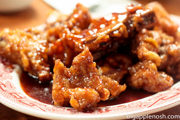 Here it is again, another rare 4-apple review! This time the title is bestowed upon an unassuming greasy spoon that is not only a hole-in-the-wall, but an underground one at that – one of my favorite Chinatown joints, Hop Kee. Yes, there are “We ate here” photos on the wall featuring Anthony Bourdain and Bill Cosby, but I was a customer way before these famous dudes! What kept me coming back? It’s that finger-lickin’ dish above. But first you’ve got to know how to order…