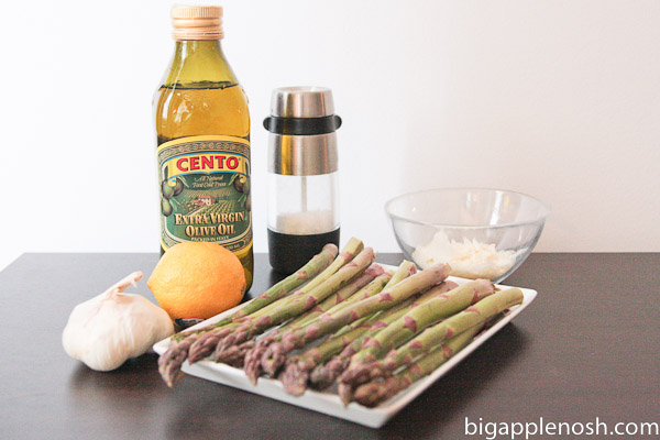 1 lb asparagus 1 tbsp olive oil 2 cloves garlic, minced Juice of 1 lemon Salt, to taste